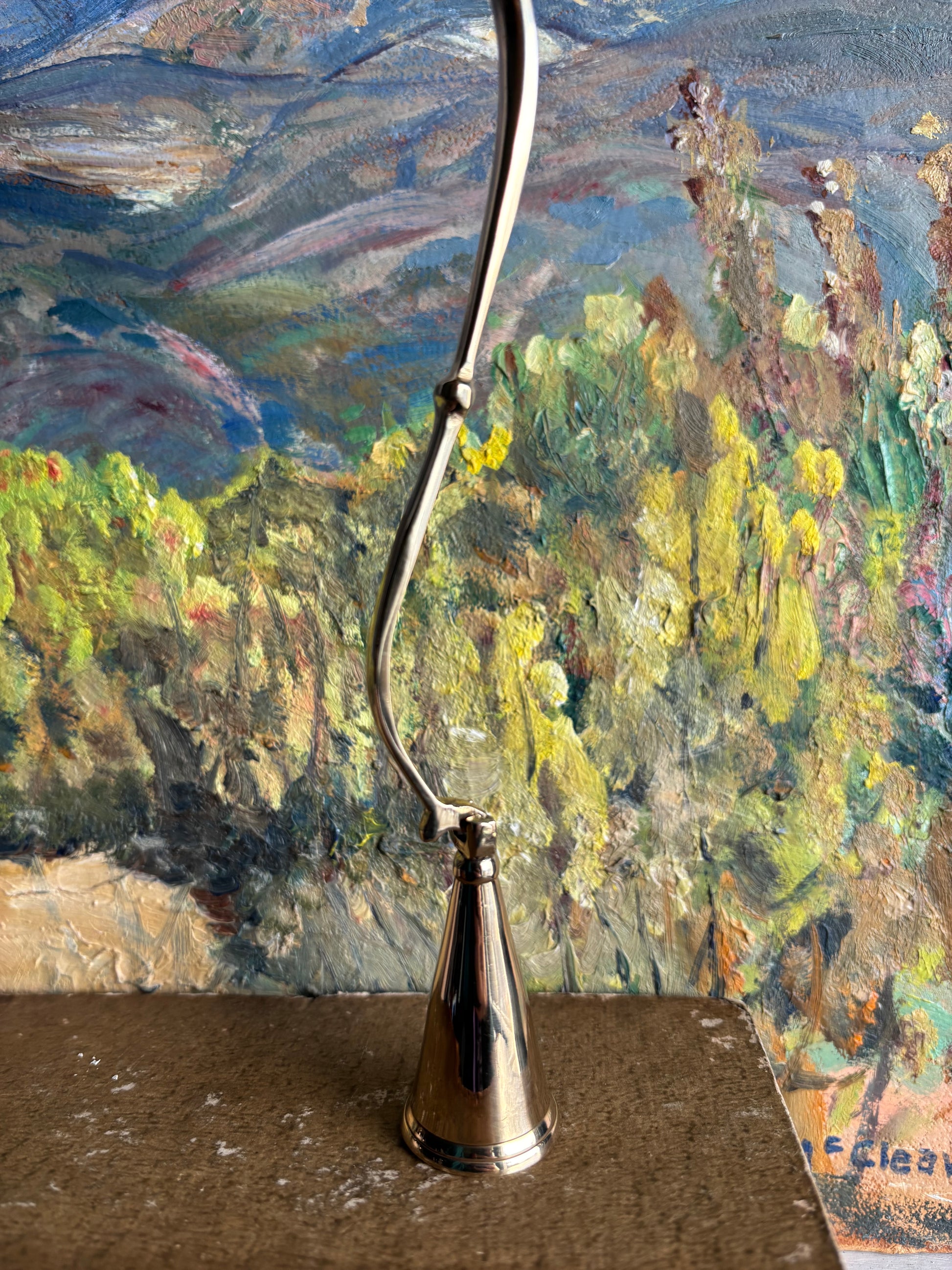 New hinged brass candle snuffers, vintage inspired. These are perfect to add to our Boheme candles (sold separately) or for gift giving. The hinge makes it easy to snuff out candles with wicks that have burned down. Beautiful curved lines. 7"